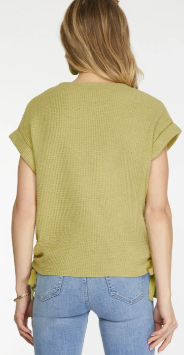 Folded drop sleeve Waffle knit top
